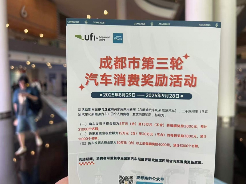 成都市商务部门提供的信息显示,市政府针对8月29日-9月28日购车的消费者,若购买参与企业的车型,可获得2000-4000元不等的奖励。